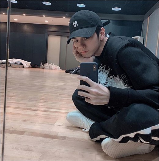 사진 속 옹성우는 연습실에서 편안한 운동복 차림으로 거울 셀카를 찍고 있다. 모자 아래에서도 빛나는 완벽 이목구비가 그의 별명 ‘옹비드’를 실감케 한다.