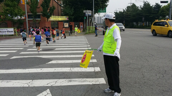 | ▲ 2018년 스쿨존 교통지원 활동을 하는 모습. (사진제공=노원구청) | ||