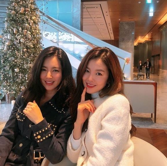공개된 사진 속엔 검은 코트를 매치한 한채아가 김성은과 다정한 모습으로 카메라를 응시하고 있다.