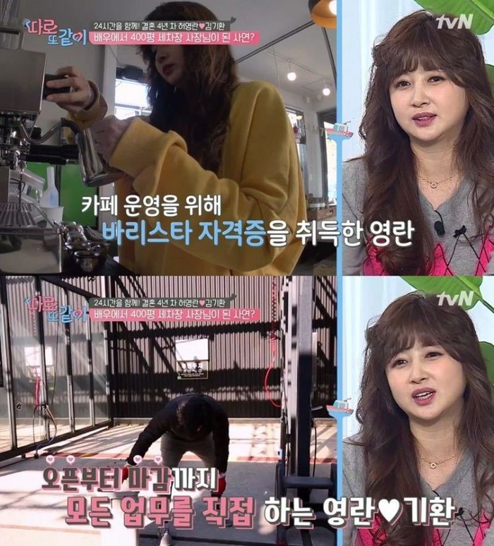 허영란은 "여자 연기자한테는 안 어울리는 게 있지 않나. 그런데 가족들과 연관이 돼 있었던 사업이었다. 결혼을 막상 했는데 일을 하고 있을 때도 아니었다. 있는 돈 가지고만 쓸 수 없는게 현실이었다. 돈 때문에 싸우고 싶진 않았다. 뭐든 해보자 해서 커피를 배우기 시작했고 대전까지 오게 됐다"고 말했다.