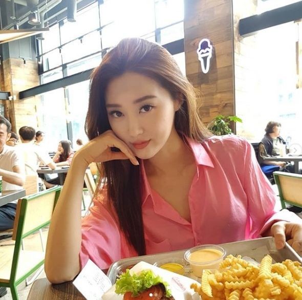 공개 된 사진 속에는 황미나 기상캐스터가 햄버거를 앞에 두고 카메라를 응시하고 있다.