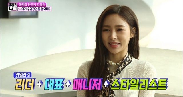 한초임은 "카밀라의 리더, 대표, 매니저, 스타일리스트까지 하고 있다"고 자신을 소개했다.