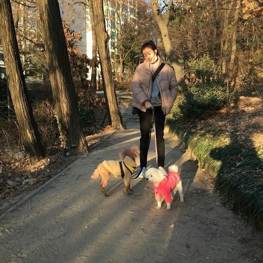 21일 강소라는 자신의 인스타그램에 "#공원산책 #마스크필수 #삼한사미"라는 해시태그와 함께 사진 두 장을 게재했다. 사진 속 강소라는 반려견들과 함께 여유로움을 만끽하며 산책을 즐기는 모습이다.