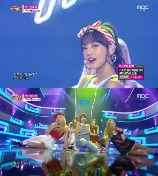 구하라는 과거 MBC '쇼! 음악중심'에서 신곡 '초코칩쿠키'로 섹시하고 발랄한 무대를 꾸몄다.