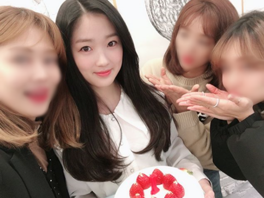 사진 속 김혜윤은 흰 블라우스를 입고 딸기 요거트 케이크를 들고 있다. 옅은 미소를 짓고 있는 그의 모습에 단아함이 드러난다.