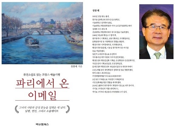 서울대 정치학과를 졸업하고 행정고시로 공직에 입문한 저자 정종제 광주 행정부시장은 지방과 중앙, 그리고 파리소재 주 경제협력개발기구(OECD)대표부 등 다양한 분야에서 근무해왔다. 그는 이러한 경험을 토대로 문화예술과 사회적 이슈를‘파리에서 온 이메일’이라는 소설스토리에 담아 쉽게 소개했다는 평을 듣고 있다. 이 책은 150mm X 225mm이며, 239 쪽 분량이다.