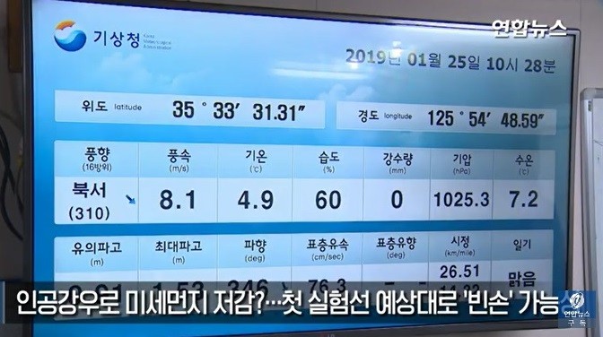 안개비 등 약한 비가 내리는 모습이 보였지만 특별히 의미를 부여할 수는 없는 수준이었다. 이에 따라 인공강우에 따른 미세먼지 저감 효과는 이번 실험에서 확인할 수 없었다.