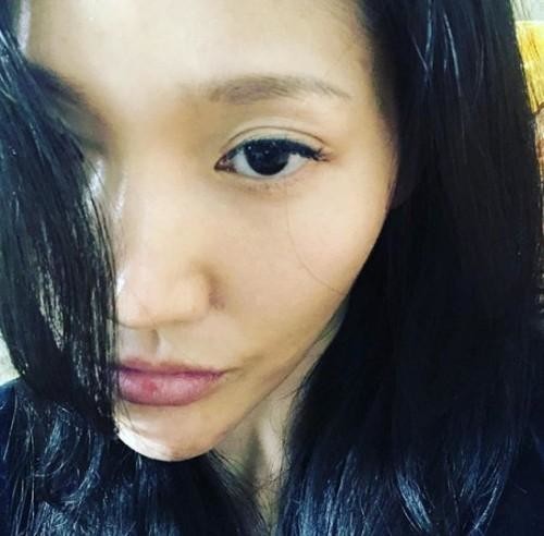 사진 속에서 장은아는 머리칼로 반쯤 얼굴을 가리고서 초근접 셀피 사진을 남겼다.