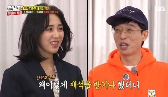 이날 마지막으로 나온 사람은 AOA 멤버 민아와 지민이었다. 민아는 유재석을 보면서 "와 같은 회사"라며 웃었다. 두 사람은 한 소속사에 몸담고 있다.