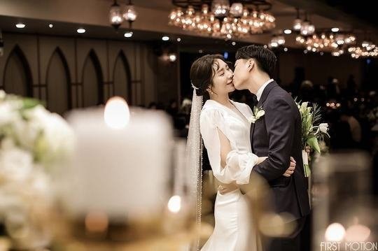 공개된 사진속에는 허안나와 그의 남편이 다정하게 입을 맞추고 있는 모습이 담겨있다. 특히, 평소 활발한 성격의 허안나의 수줍은 미소가 눈길을 끈다.