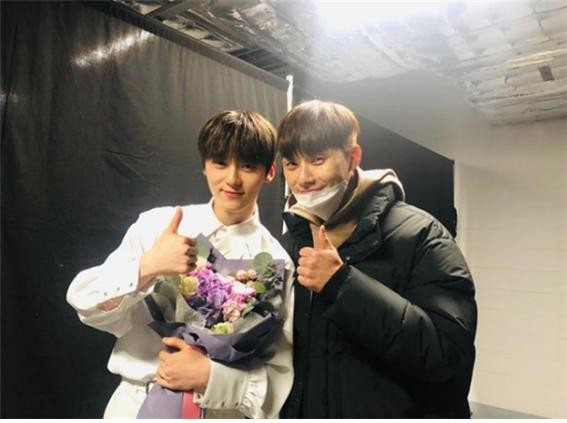황민현은 최근 자신의 인스타그램에 “오늘 너무 행복했어요. 감사합니다. 그리고 서준이 형 와주셔서 감사해요”라는 글과 함께 박서준과 함께 찍은 사진을 게재했다.