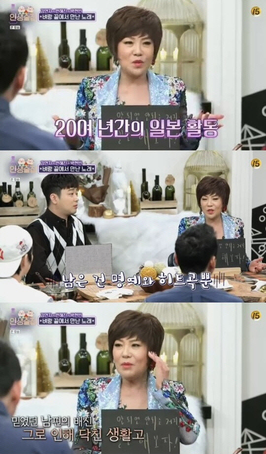 김연자는 남편의 배신으로 생활고에 우울증까지 겹쳤다. 그는 "우울해서 울고 그랬다. 그러다 마침 동생이 전화해서 '한국 와라' 하는데 '아, 내가 갈 곳이 있었구나' 바로 와버렸다"고 귀국 이유를 밝혔다.