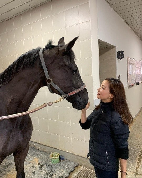 공개된 사진 속에는 고소영이 말과 눈을 맞추는 모습이 담겨있다.