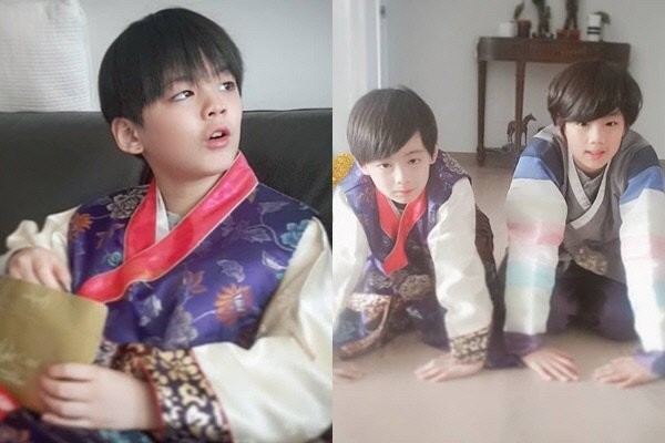 사진 속 찬형·찬호 형제는 한복을 입고 포즈를 취하고 있다. 마치 방탄소년단 멤버 진과 뷔의 어릴적 모습을 보는 듯한 또렷한 이목구비가 시선을 강탈한다.