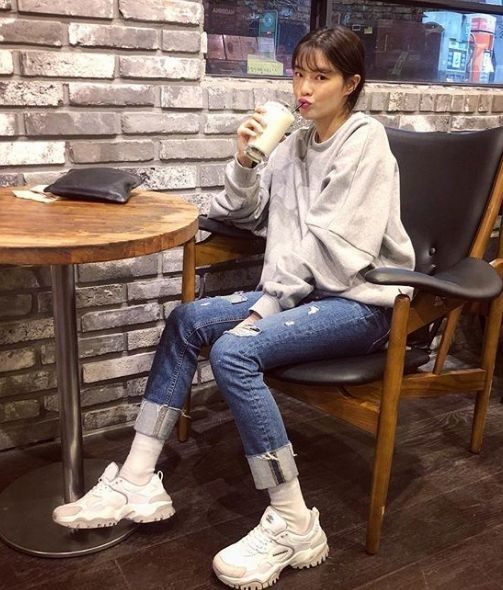공개된 사진 속 이선빈은 편안한 옷차림으로 카페에 앉아 음료를 마시고 있다.