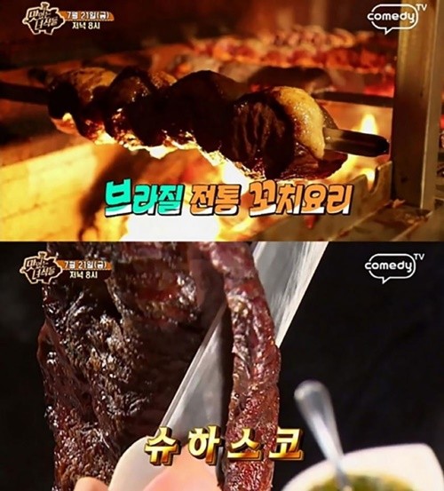 과거 방송된 ‘맛있는 녀석들’ 126회에서는 무한리필 슈하스코 맛집이 소개되며 시청자들의 침샘을 자극했다.