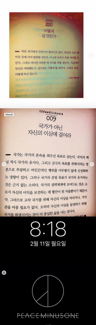 사진에는 “어떻게 살 것인가” “국가가 아닌 자신의 이상에 걸어라” 라는책 구절이 남겨져 눈길을 끌었다.