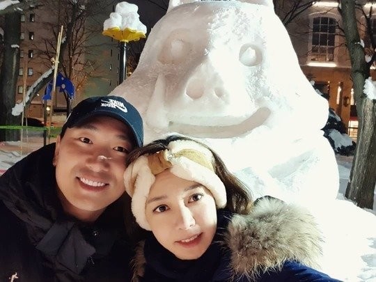 공개된 사진 속에는 캐릭터 눈사람을 배경으로 얼굴을 맞댄 라이머 안현모의 모습이 담겨 있다. 달달함이 흐르는 환한 미소가 인상적이다.