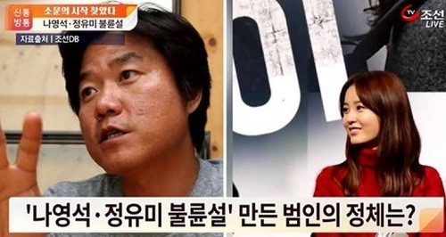 앞서 지난해 10월 두 사람의 불륜설 지라시가 퍼졌다. 이에 나영석 PD가 배우 정유미와의 염문설에 대해 "해당 내용은 모두 거짓이며, 최초 유포자 및 악플러 모두에게 법적인 책임을 물을 예정이다. 저 개인의 명예와 가정이 걸린만큼 선처는 없을 것임을 명백히 밝힌다"고 밝혔다.
