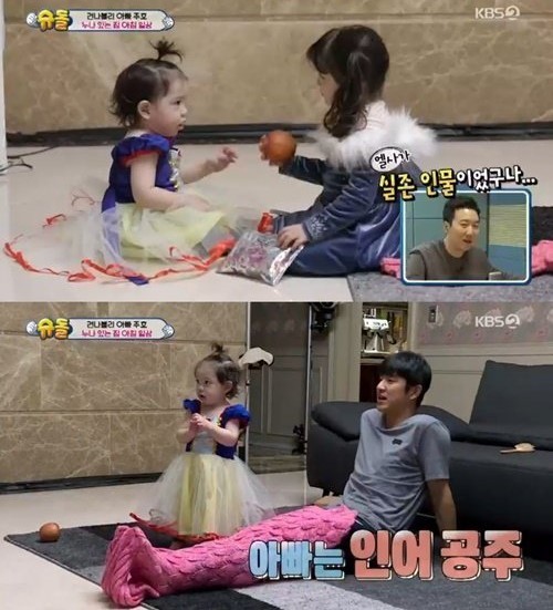 이날 나은이는 아침부터 건후에게 백설공주 옷을 입혔다. 처음에 울던 건후는 거울을 본 뒤 마음에 드는지 울음을 뚝 그쳐 귀여움을 유발했다.