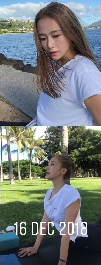 공개된 사진 속에는 하와이 여행 중인 홍수현의 모습이 담겼다. 밝은 갈색으로 염색한 홍수현은 해변가에 앉아 휴식을 즐기고 요가를 하며 여유로운 일상을 보내고 있다. 사진 속 ‘12월 16일’이라는 문구로 보아 지난해 12월 여행 사진을 올린 것으로 추측됐다.