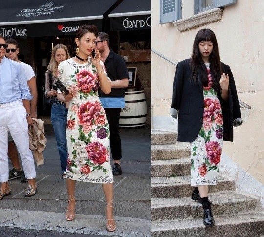 반면, 딸 유채원은 역시 같은 원피스를 입었으나 검정색 재킷을 걸쳐 시크한 느낌을 더했다.