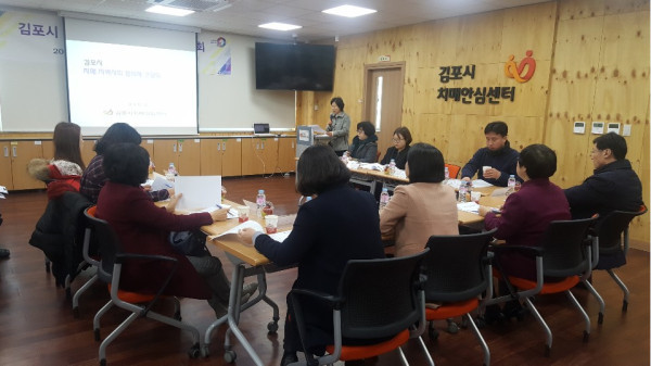 경기 김포시보건소가 13일 치매안심센터에서 김포시 치매지역사회협의체 간담회를 열고 전년도 치매관리사업 추진성과 및 2019년 시행계획 평가를 실시했다. 사진은 간담회 진행 모습. (사진제공=김포시청)