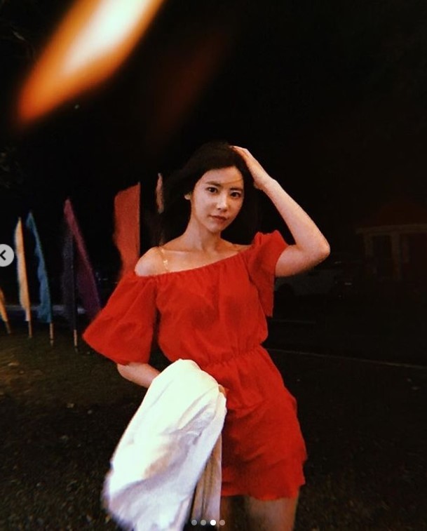 공개된 사진 속에는 어깨를 드러낸 붉은 드레스 차림의 기희현의 모습이 담겨 있다.
