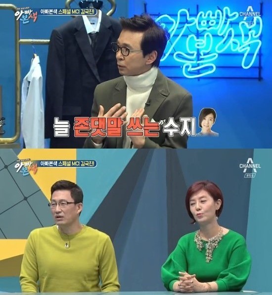 13일 방송된 채널A '아빠본색'에 김국진이 휴가를 떠난 김구라 대신 일일 MC로 합류했다. 이날 김국진은 강수지에 대한 질문을 받았다. 서로 존댓말을 하느냐 반말을 하느냐였다.