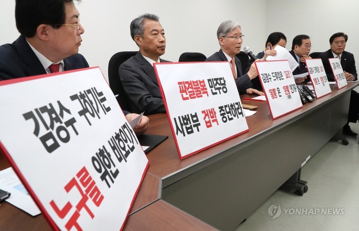 이어 "여권에서도 두 법관이 양승태 전 대법원장과 인연이 있다는 이유로 ‘적폐 판사’ 운운하며 노골적으로 재판부를 겁박하고 있다"면서 "사법부 독립을 뿌리째 흔드는 심각한 ‘사법 농단’이라고 하지 않을 수 없다"고 지적했다.