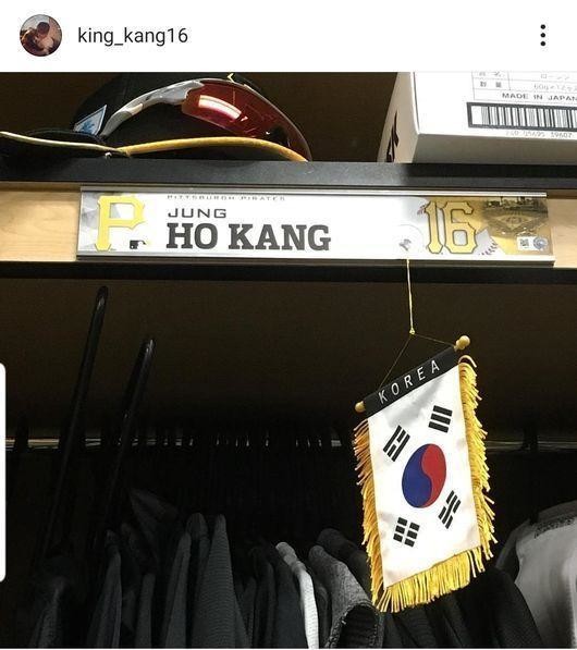라커 상단에는 'JUNG HO KANG'이라는 강정호의 영문명과 등번호 16번이 적혀 있었고 태극기가 걸려 있는 것이 눈길을 끌었다. 강정호는 인스타그램에 운동하는 모습, 야구공 등 다양한 이모티콘을 곁들였다.