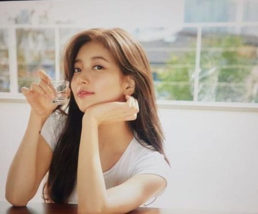 공개된 사진 속 수지는 흰 티셔츠를 입은 채 소주잔을 들고 있거나, 소주병과 소주잔을 앞에 놓은 채 미소 짓고 있어 눈길을 끈다.