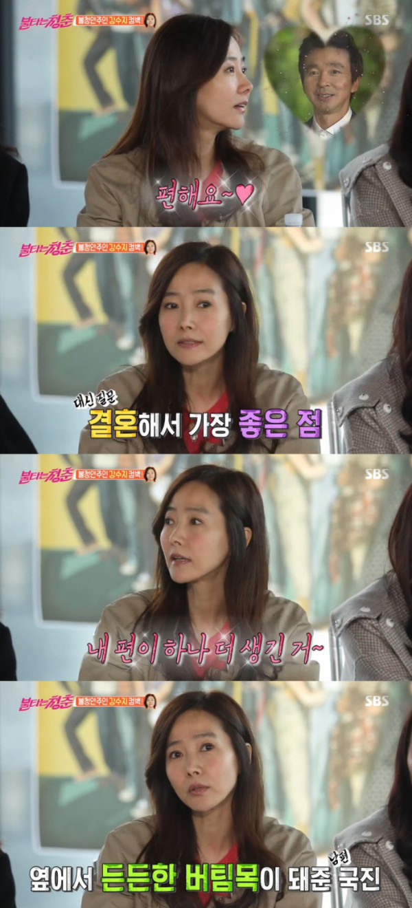 '불타는청춘' 가수 강수지가 남편 김국진과의 결혼 생활을 밝혀 이목을 모으고 있다.