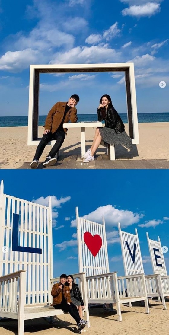 사진 속에는 바다를 배경으로 포즈를 취하고 있는 김승혁과 이주리의 모습이 담겨 보는 이의 부러움을 자아냈다.