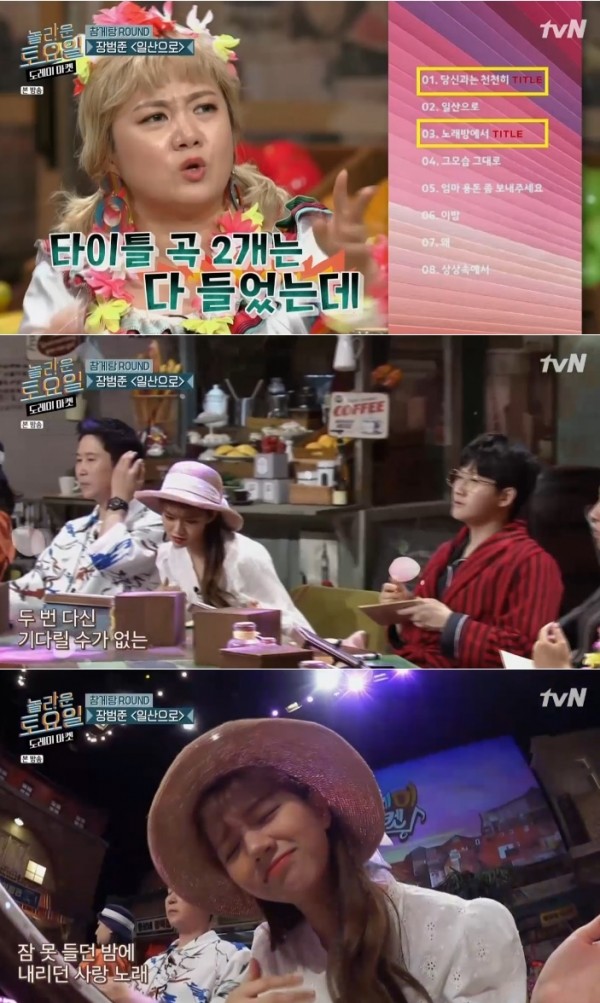 박나래는 “타이틀곡 2개는 매일 듣고 있는데 ‘일산에서’는 안들었다”며 아쉬워했다. 곧이어 장범준 ‘일산으로’ 가사 문제가 출제됐고 엑소 첸은 “갑자리 리듬이 빨라진다”며 당황했다.