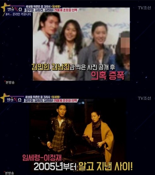 이에 한 연예부 기자는 "맞다. 임세령이 김민희와 함께 찍은 사진이 공개되면서 의혹이 완전 증폭됐다. 이정재는 김민희와 공식적으로 사귄 게 2003년부터 2006년 까지다. 그런데 임세령과 처음 만난 게 2005년으로 알려지면서 '김민희가 소개해준 거 아냐?'라는 소문이 나돌게 된 거다"라고 설명했다.