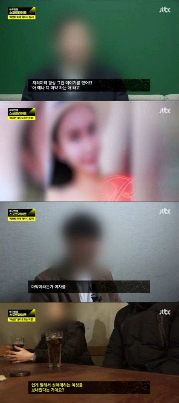 다른 제보자는 “마약 하는 거 본 적 있는데 다른 사람한테 판매하는 건 본적이 없다”라면서도 중국 손님들에게 마약을 팔고 여자를 보내줬다고 증언했다. 이들은 지난 9월 애나를 마약으로 신고했지만, 수사는 흐지부지 끝났다고.