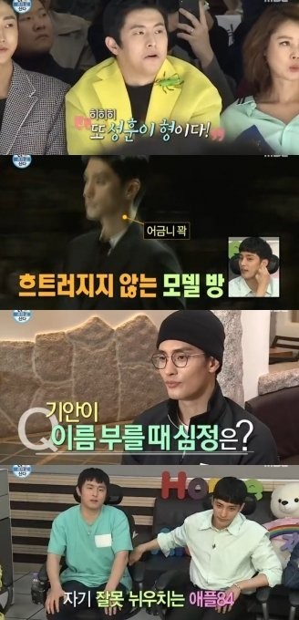 쇼가 시작됐고 성훈이 등장하자 기안84는 "성훈이 형!"이라며 그의 이름을 불렀다. 성훈은 기안84과 눈이 마주치자 웃음이 나오려는 걸 안간힘으로 참았다. 양옆에 있던 진영과 김성령도 깜짝 놀라는 모습을 보였다.