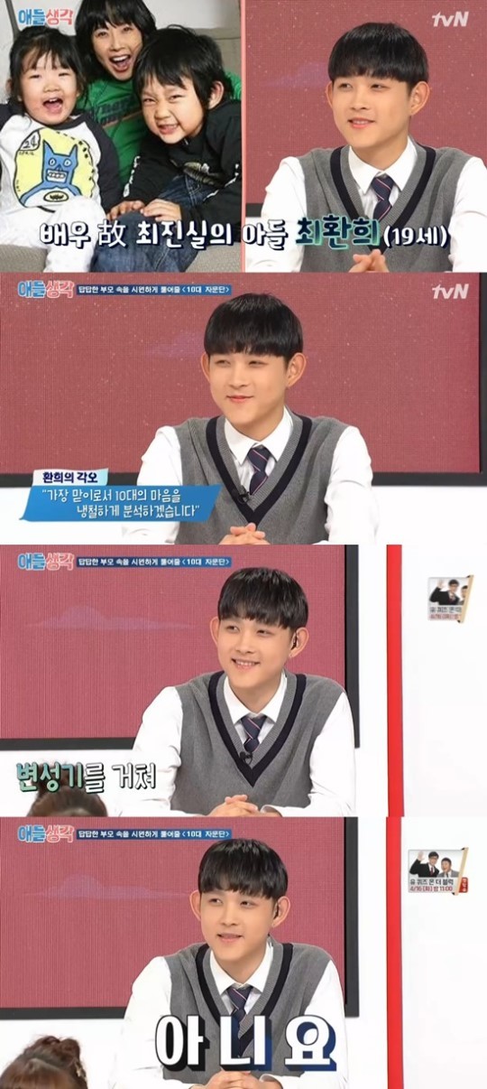 이날 최환희는 “제주도에서 공부하고 있는 최진실 씨 아들 최환희”라고 자신을 소개했다. 최환희는 "이제 19살이 됐다"며 "제가 제일 나이가 많은 만큼 동생들과 냉철하게 분석해보도록 하겠다"고 각오를 드러냈다.