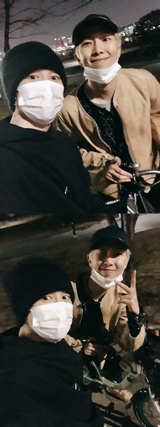 방탄소년단 멤버 RM이 올린 지민과의 자전거 데이트 셀피가 회자되고 있다.