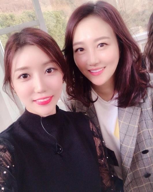 사진 속 두리는 블라우스를 입고 단아한 미모를 자랑한다. 장윤정은 두리와 함께 환한 미소를 지으며 청순한 분위기를 자아낸다.