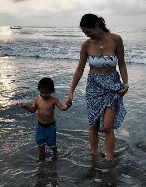 가희는 13일 자신의 인스타그램에 아들과 찍은 사진 한 장을 게재했다. 공개된 사진 속 가희는 아들 노아 군과 바다를 거닐고 있다.
