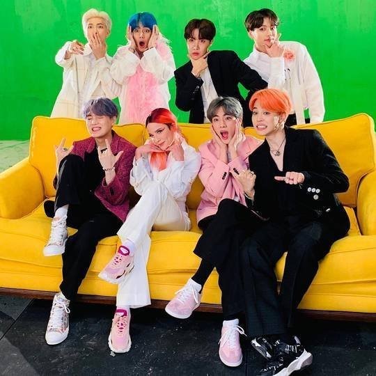 사진 속에는 방탄소년단 멤버들과 옹기종기 모여있는 할시의 모습이 담겼다. 할시는 꽃받침 포즈를 취하고 있다. 할시와 방탄소년단 멤버들의 훈훈한 비주얼과 화기애애한 분위기가 눈길을 끈다.
