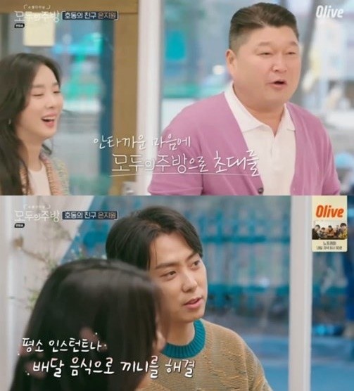 14일 방송된 올리브 '모두의 주방'에서는 강호동의 절친 은지원과 이청아의 동네친구 배우 박지빈, 그리고 모두의 절친 경수진이 출연했다.