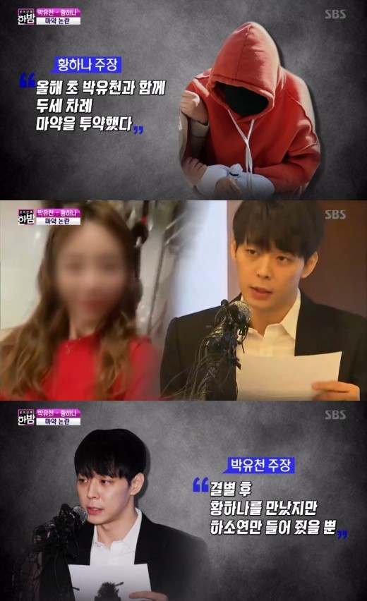 이날 ‘본격 연예 한밤’에서 황하나 씨는 “올해 초 박유천과 함께 두, 세 차례 마약을 투약했다”고 주장 했고, 박유천은 “결별 후 황하나 씨를 만났지만 하소연만 들어 줬을 뿐”이라고 반박했다.