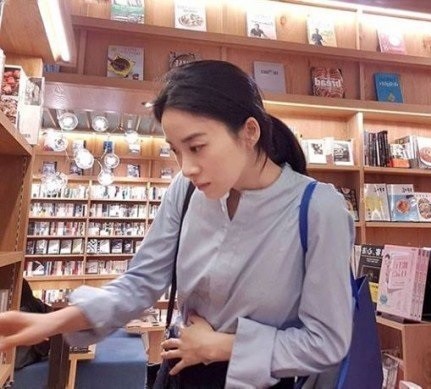 사진 속 이청아는 서점으로 보인다. 신중하게 책을 고르는 듯 보인다.