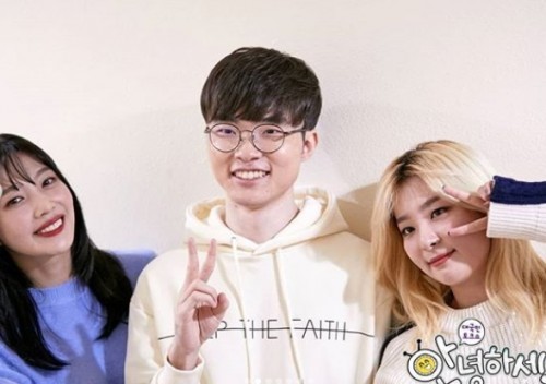 사진에는 페이커, 레드벨벳 조이, 슬기의 모습이 담겨있다. 특히 페이커의 밝은 미소가 담겨 이목을 사로잡았다.