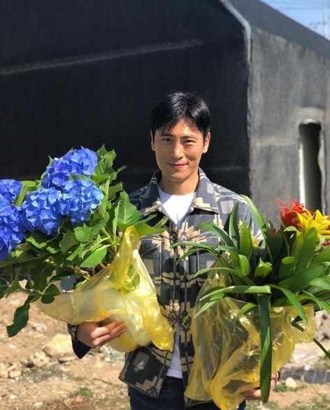 사진 속 김재우는 꽃을 한 다발 들고 미소를 지으며 카메라를 응시하고 있는 모습으로 누리꾼들의 시선을 사로잡았다.