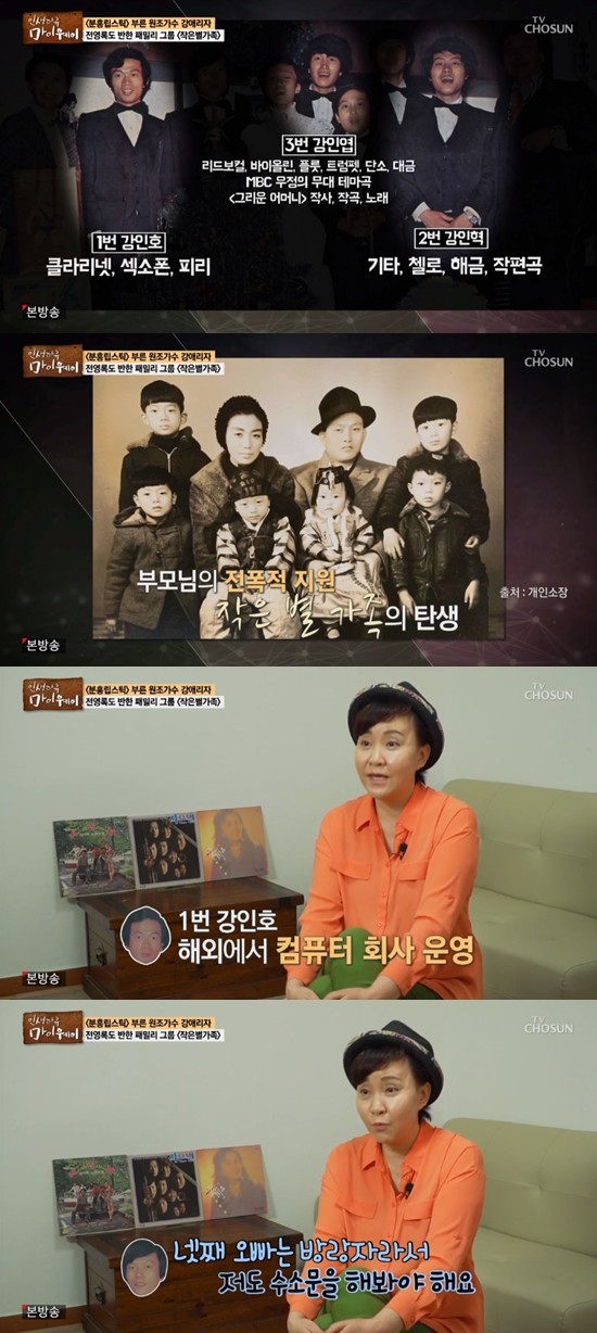 이날 강애리자는 6남 1녀의 근황에 대해 "1번 오빠 강인호는 해외에서 컴퓨터 회사운영 중이고, 2번 오빠 강인혁은 해외에서 선교사로 활동 중이다. 3번 오빠 강인엽은 회사 다니다가 지금은 색소폰 선생님을 하고 있다"고 말했다.