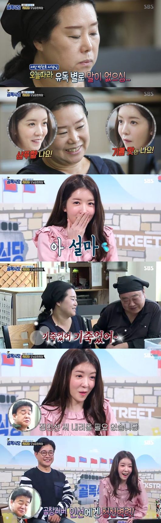 정인선이 다시 곱창을 시식하며 "곱이 다르다"고 감탄, 사장은 "이번엔 무슨 향이 나냐, 린스향 나냐"며 뒤끝 작렬한 모습을 보였다. 정인선은 "완벽하다"며 당황, 이어 화기애애한 분위기로 웃음 꽃이 피었다.